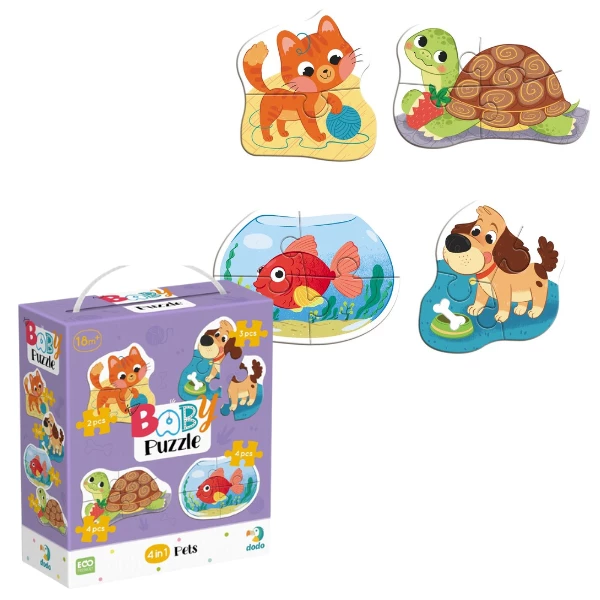 Пазл DoDo 4 в 1 «Baby Puzzle. Домашние животные» – это яркий и познавательный набор для детей от 2-3 лет, который объединяет игру и обучение. В комплект входят четыре отдельных пазла с разным количеством элементов, что позволяет постепенно повышать уровень сложности и совершенствовать умение собирать картинки.