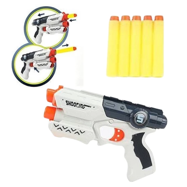 Подарите ребёнку море веселья и драйва с игрушечным пистолетом, стреляющим мягкими пенопластовыми дротиками!Игрушка полностью безопасна, подходит для активных игр дома и на улице.Пистолет лёгкий, удобный в руке и помогает развивать у ребёнка меткость, ловкость и координацию движений.