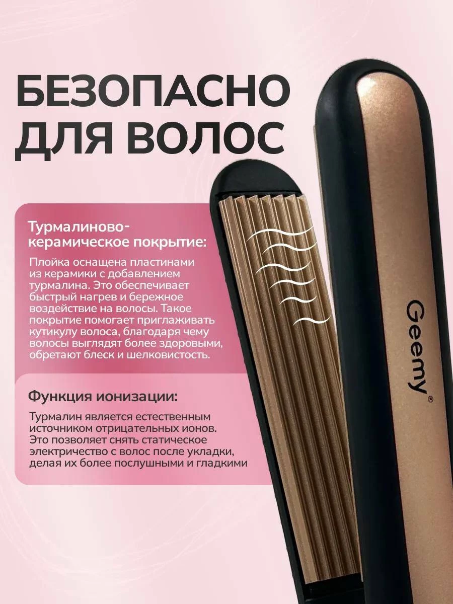 Преобрази свою прическу в профессиональный образ прямо у себя дома с гофре-плойкой Geemy GM-2955! Это устройство специально создано для создания эффекта гофре — мелких и частых волн, которые придают волосам объём и текстуру от корней до кончиков.