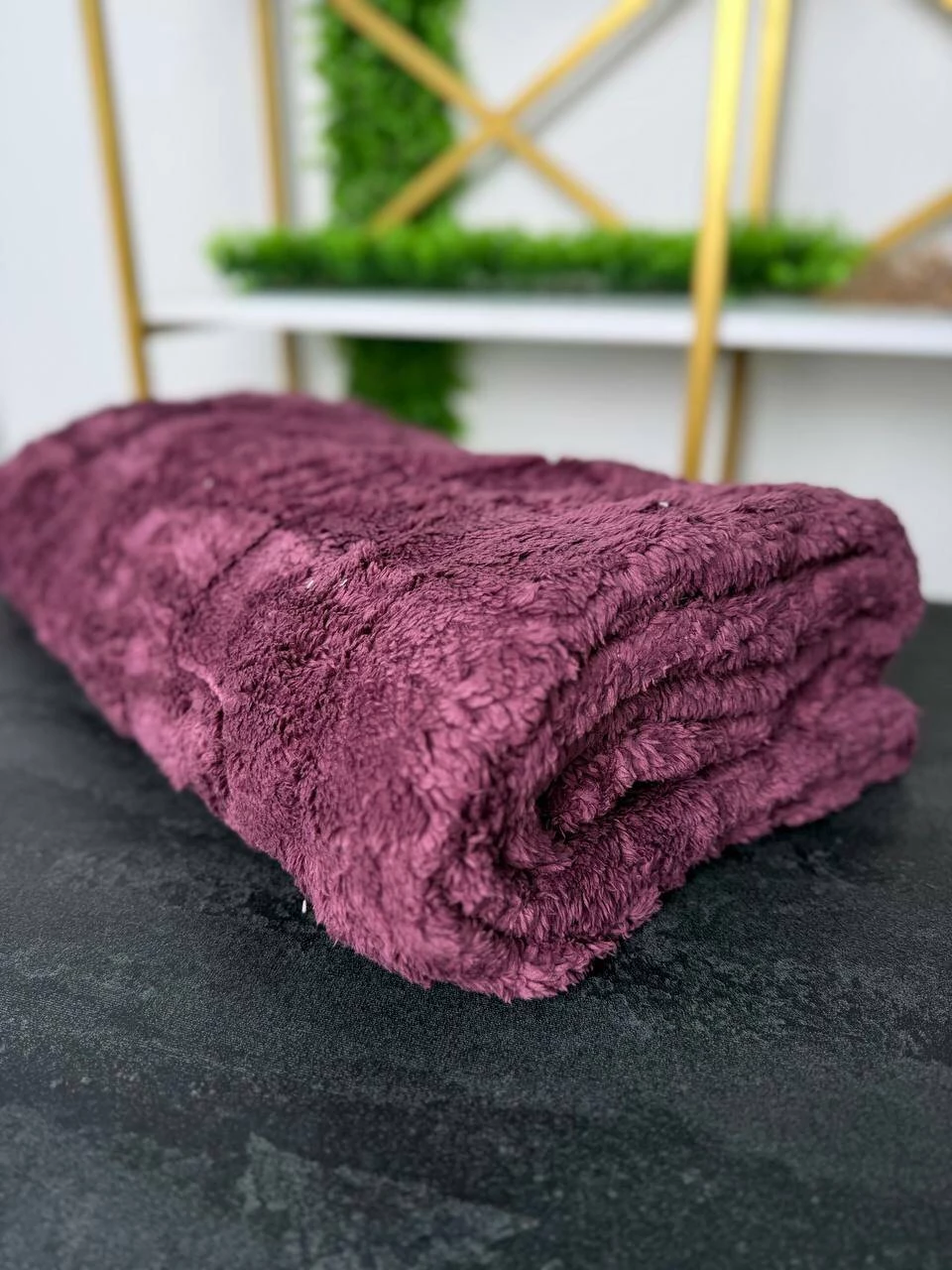 Мягкое и пушистое покрывало, идеально подходит для холодных вечеров и придаёт спальне уют и элегантность. Бархатистая текстура дарит комфорт и тепло, а фиолетовый цвет добавляет изысканности.