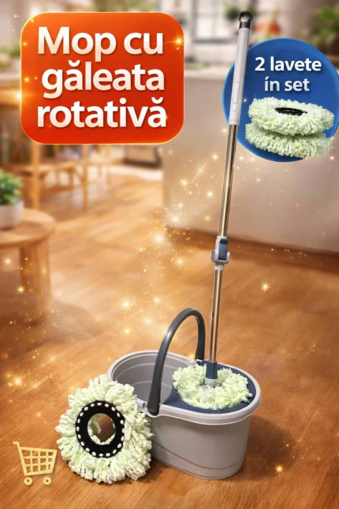 Вращающаяся швабра легко очищает даже труднодоступные места, а длинная ручка делает процесс максимально комфортным.