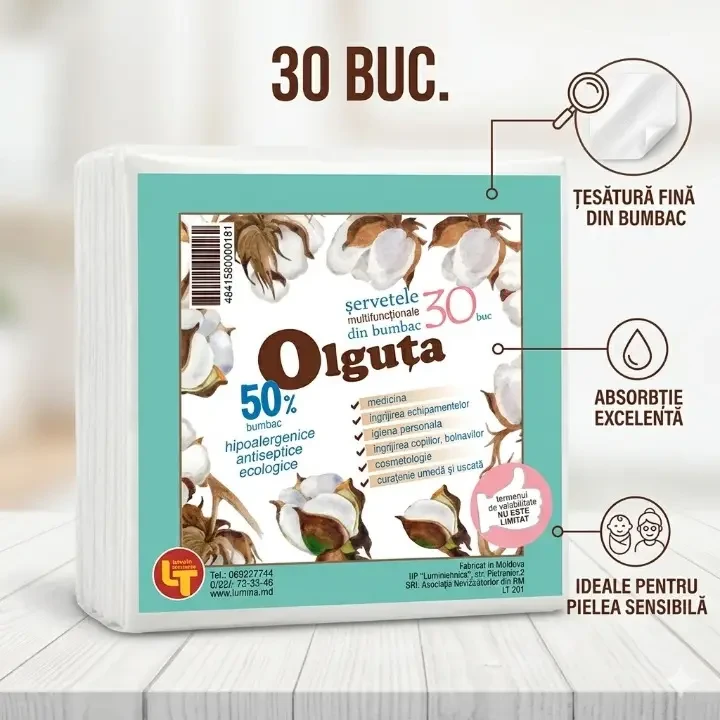 Салфетки из хлопка OLGUȚA LT201 (30 шт.) — это мягкое и безопасное решение для ежедневного ухода. Изготовлены из натурального хлопка, обладают гипоаллергенными и антисептическими свойствами.
