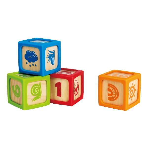 Подарите ребёнку незабываемое время игры с этим изысканным набором из 4 деревянных строительных блоков! Изготовленные из дерева с мягкими силиконовыми краями, яркими узорами и буквами, эти блоки идеально подходят для раннего обучения и маленьких ручек.