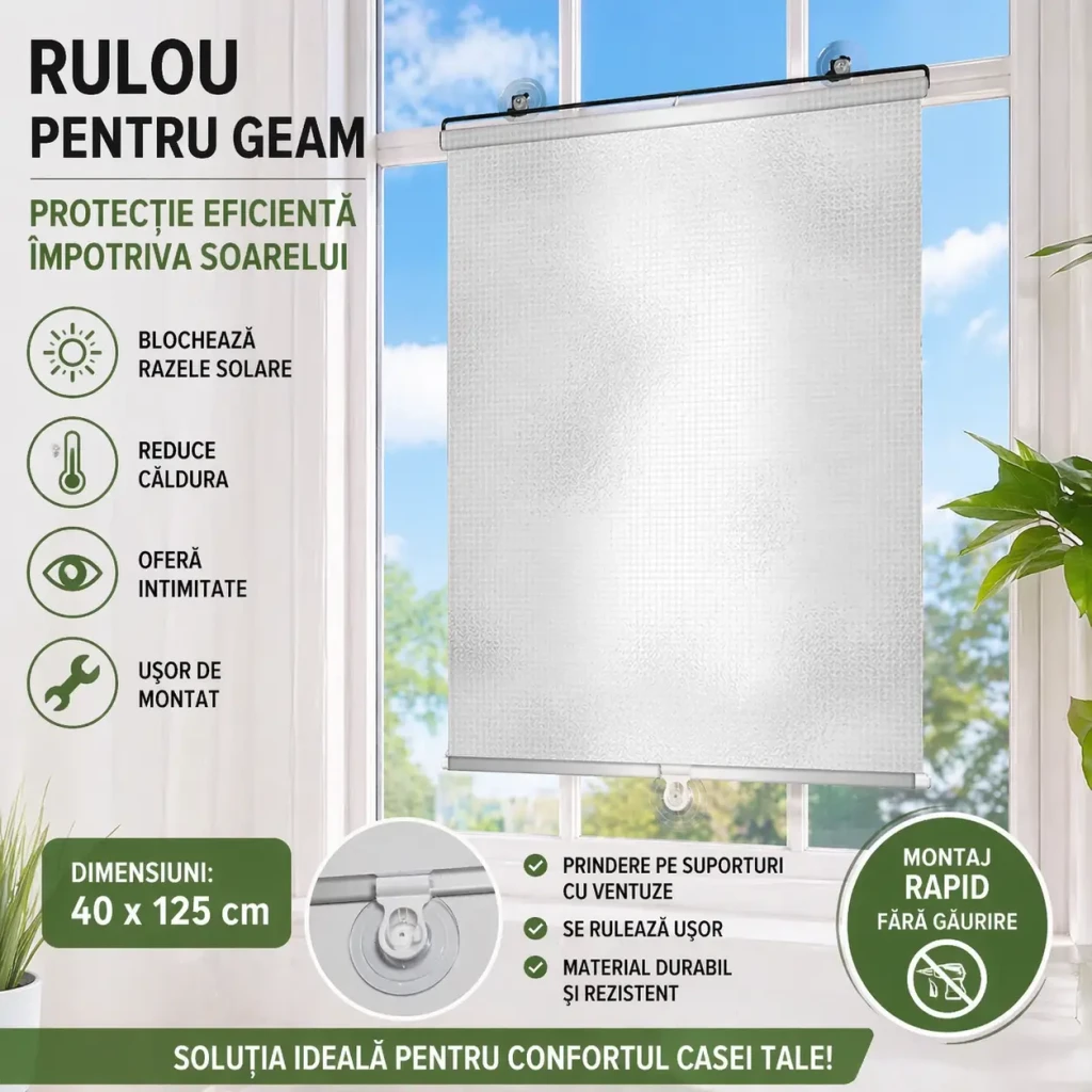 Рулонная штора на присосках 40×125 см обеспечивает полное затемнение и приватность. Легко устанавливается без сверления, не повреждая поверхность.