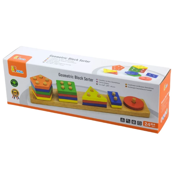 Сортер геометрических блоков Viga Toys – это развивающая игрушка для детей от 2 лет, которая помогает познакомиться с основными геометрическими формами, цветами и понять принципы сортировки.