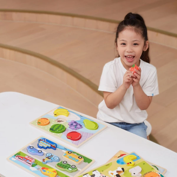 Деревянный тактильный пазл от бренда VIGA с ярким мотивом фруктов. В набор входит красочная основа и 7 элементов. Задача ребёнка — подобрать плитки с изображениями фруктов и вставить их в соответствующие места на основе, где для удобства изображены контуры недостающих элементов. Такая игра помогает развивать точность движений рук, улучшать зрительно-моторную координацию, тренировать память, логическое мышление и концентрацию. Благодаря достаточной толщине деталей, пазлы можно использовать и как отдельные фигурки для игр.