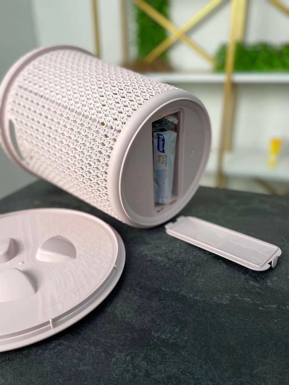 Мусорное ведро Magic на 12 литров — практичное и стильное решение для кухни или ванной. Дизайн с плетёным узором придаёт современный вид, а боковой отсек для хранения рулонов пакетов делает использование особенно удобным. В комплекте идёт крышка, а боковые ручки обеспечивают лёгкость и гигиеничность в применении.