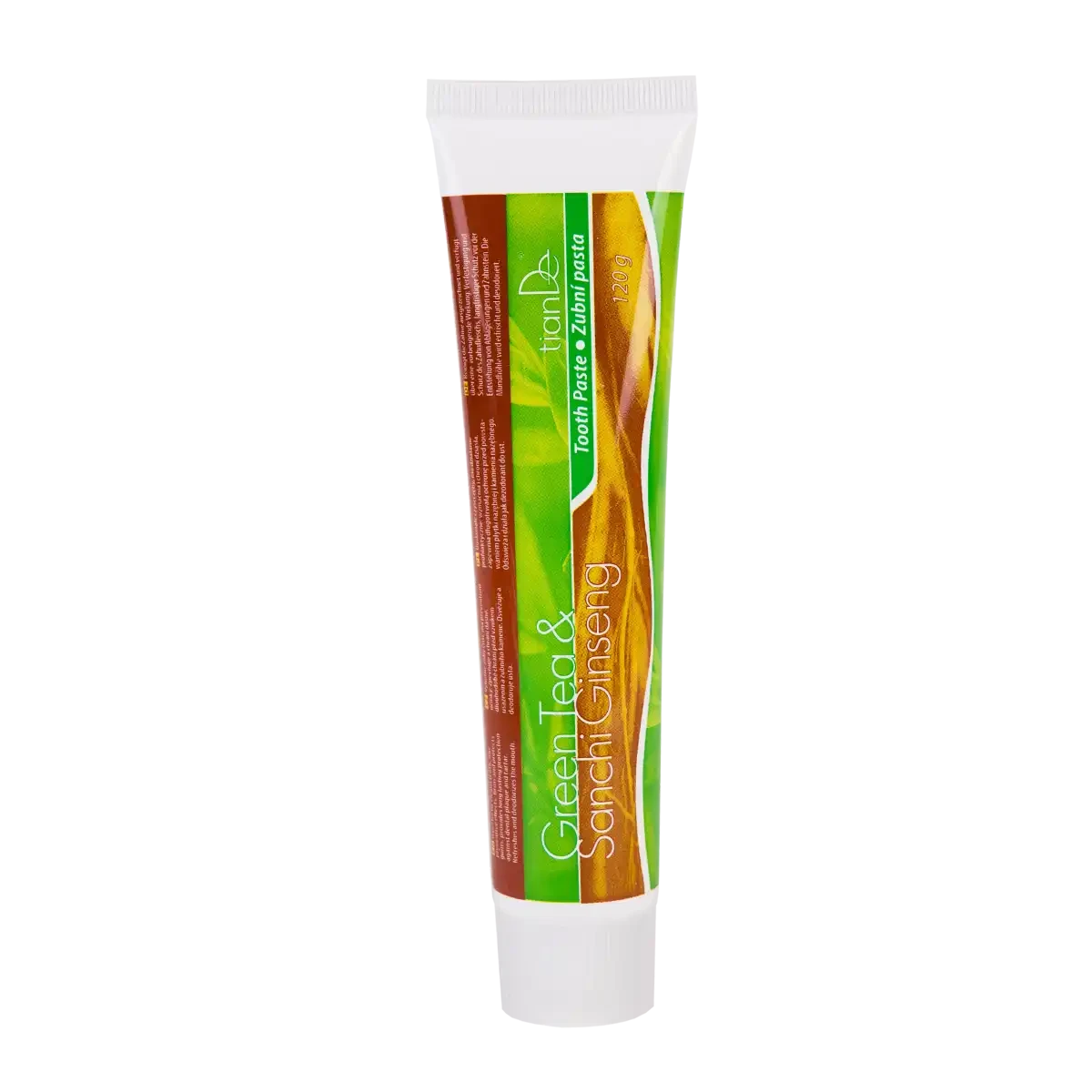 Осуществляет комплексный уход за полостью рта: тщательно очищает от налета, заботится о здоровье десен, обеспечивает профилактику кариеса и свежее дыхание.Зубная паста содержит натуральные антибактериальные компоненты экстракта зеленого чая и ментола. Экстракт корня женьшеня Санчи способствует нормализации обменных процессов в тканях пародонта.Подходит для постоянного применения благодаря мягкой очищающей формуле на основе гидратированного кремния и отсутствию в составе фтора, парабенов, хлоргексидина и триклозана.Рекомендуем использовать вместе с зубной щеткой «Проденталь».ПРИМЕНЕНИЕ:Чистить зубы 2 раза в день. Не глотать.