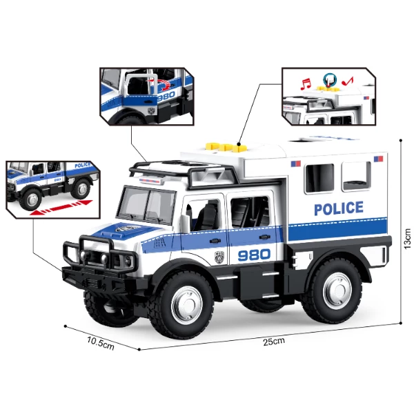 Mașina de jucărie inerțială Wenyi este un cadou perfect pentru micii pasionați de vehicule. Designul realist și efectele luminoase și sonore fac jocul mai captivant, iar ușile care se deschid adaugă realism. Recomandat pentru copii de la 3 ani.