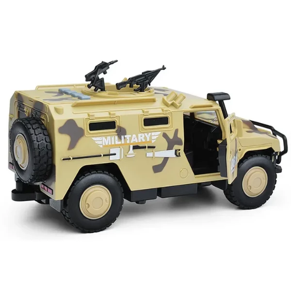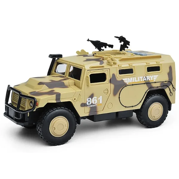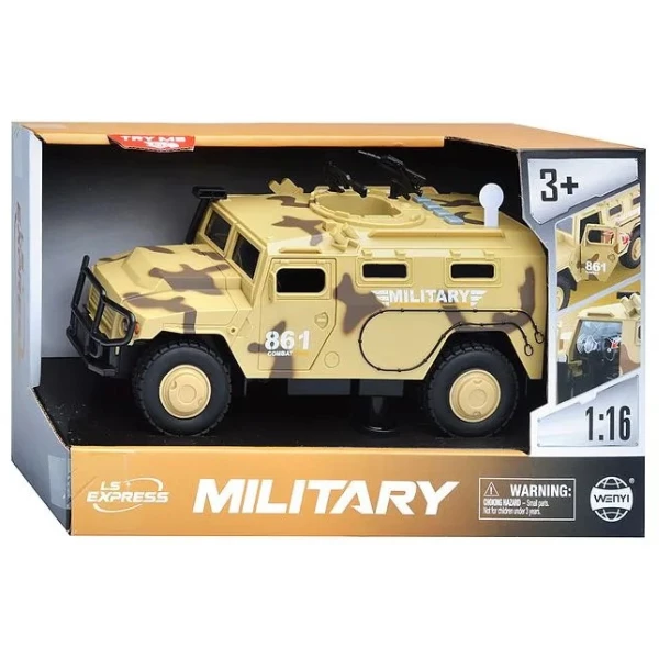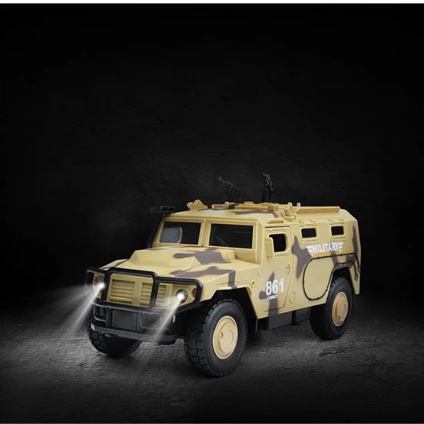Mașina inerțială „Vehicul Blindat Militar” este un cadou excelent pentru micii pasionați de tehnică militară. Designul realist, sunetele motorului și luminile farurilor fac joaca mai captivantă. Recomandat pentru copii de la 3 ani.