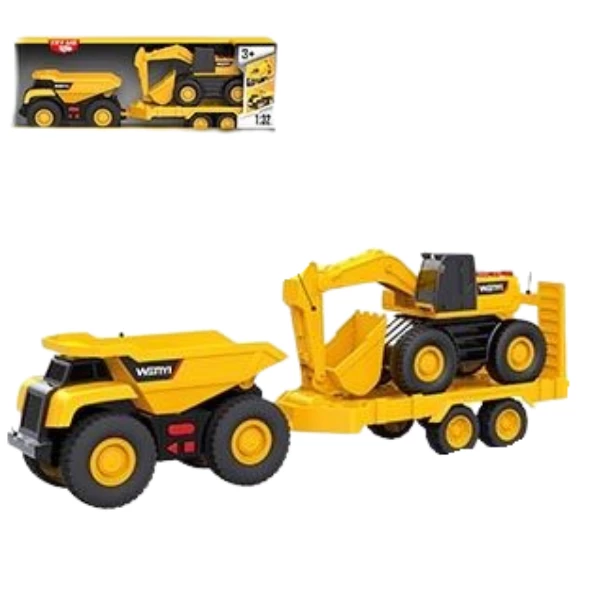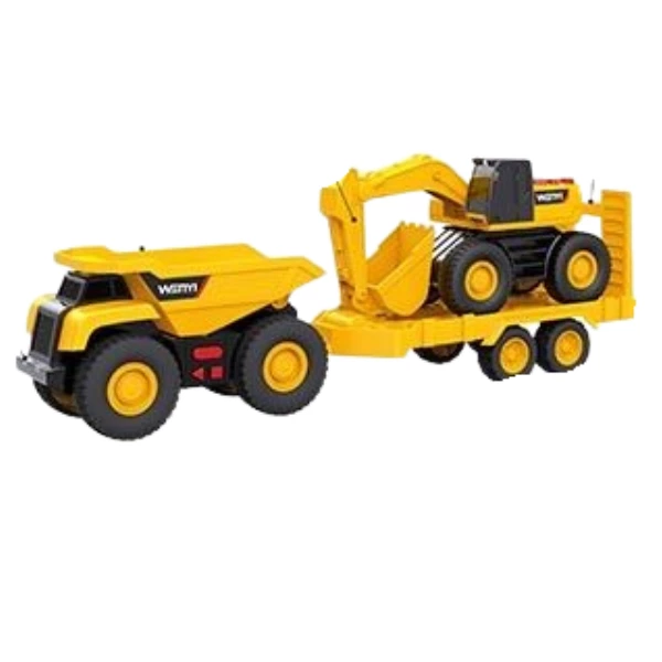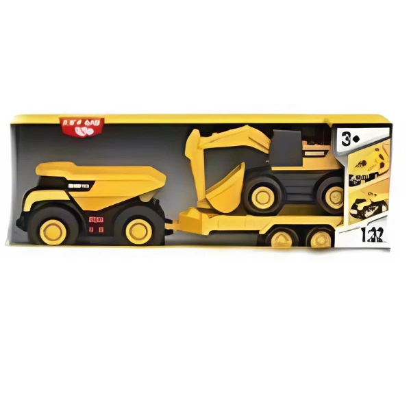 Setul de utilaje de construcții atrage imediat atenția copiilor: basculanta și încărcătorul la scară 1:24 arată realist și sunt gata de joacă!