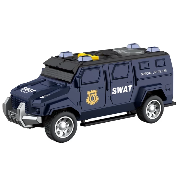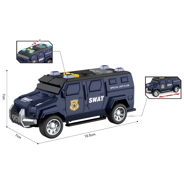 Vehiculul este echipat cu mecanism inerțial, efecte luminoase și sonore realiste, oferind o experiență de joacă captivantă.