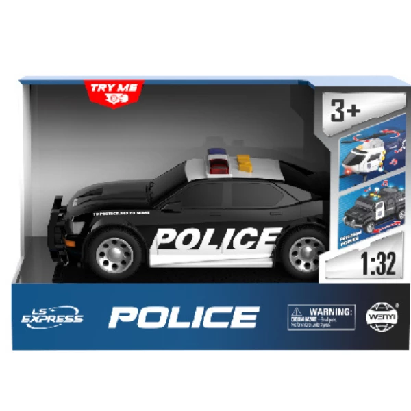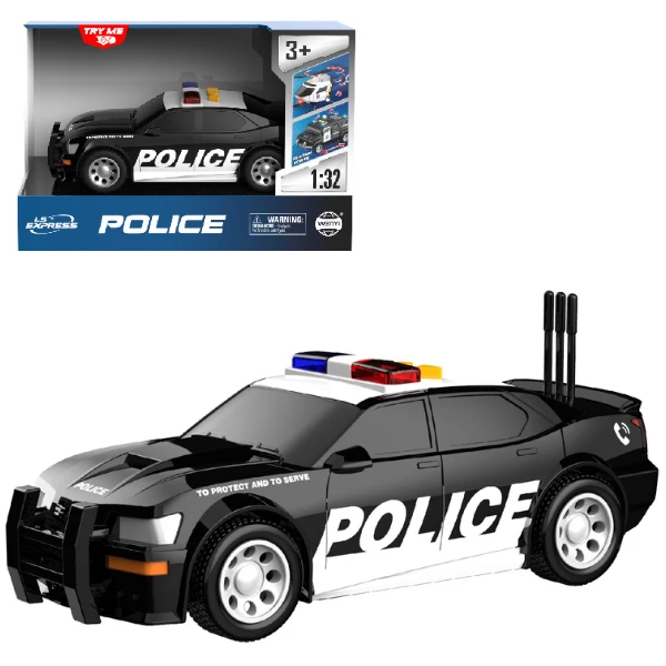 Mașina de poliție inerțială 1:32 este o jucărie atractivă și distractivă pentru copiii de la 3 ani. Designul realist și detaliile bine lucrate îi permit copilului să se simtă ca un adevărat apărător al legii. Datorită mecanismului inerțial, mașina pornește ușor printr-o simplă împingere, iar efectele luminoase și sonore fac jocul și mai captivant. Dimensiunea compactă permite transportul ușor în plimbări sau călătorii.