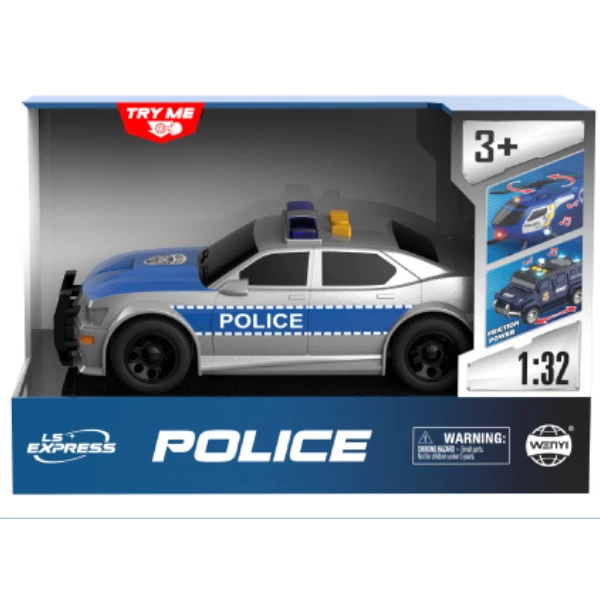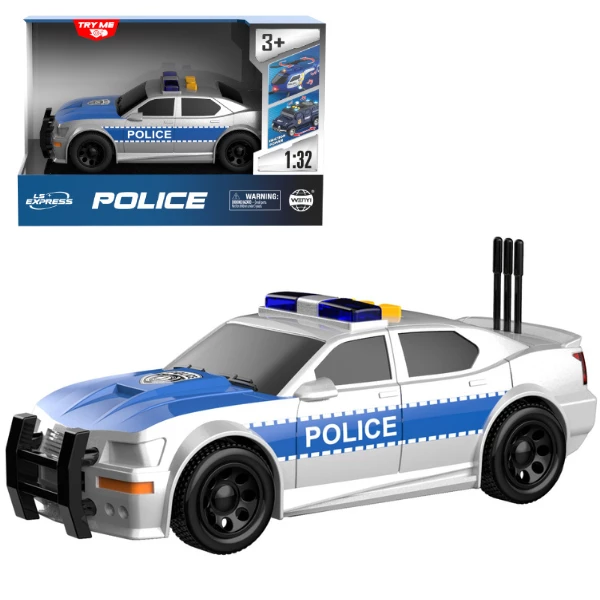 Mașina de poliție inerțială 1:32 este o jucărie atractivă și distractivă pentru copiii de la 3 ani. Designul realist și detaliile bine lucrate îi permit copilului să se simtă ca un adevărat apărător al legii. Datorită mecanismului inerțial, mașina pornește ușor printr-o simplă împingere, iar efectele luminoase și sonore fac jocul și mai captivant. Dimensiunea compactă permite transportul ușor în plimbări sau călătorii.