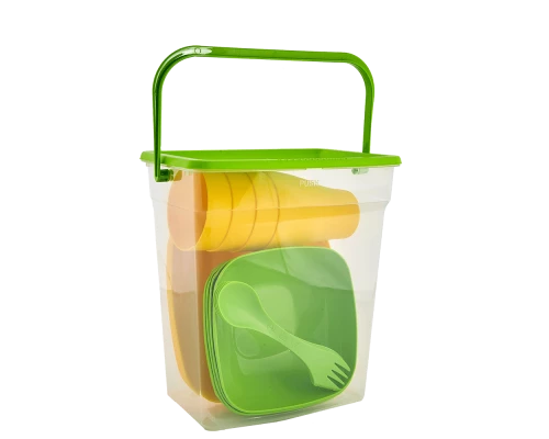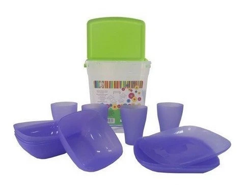 169042 Набор пластиковой посуды Aleana 24x17,5x24,5 смНабор посуды Алеана - это отличный и полезный подарок для всех любителей отдыха на природе.Набор рассчитан на 4 персоны и состоит из глубоких и плоских тарелок, стаканов, а также ложек и вилок. Набор посуды выпускается в различных вариантах цветов. Набор посуды изготовлен из качественного пищевого пластика, который отличается износостойкостью, экологичностью и прочностью. Набор посуды компактно упакован в удобный контейнер для хранения и пере ...
