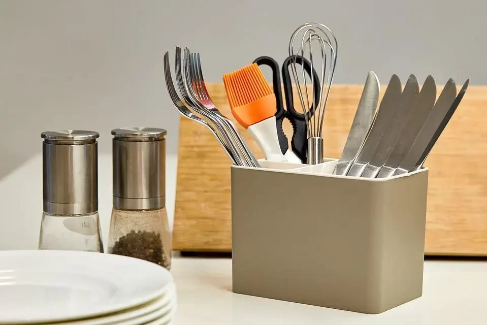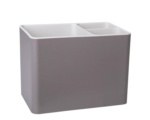 169075 Держатель для столовых приборов «Plus» Aleana 15.5x10x11.5Подставка под столовые приборы "Плюс" станет незаменимым аксессуаром для каждой кухни. Она позволит обеспечить дополнительное пространство для сушки и хранения кухонной утвари. Подставка имеет 3 отделения, которые позволяют хранить используемые ежедневно столовые приборы отдельно друг от друга. Изделие состоит из подставки и вкладки. Последняя имеет на дне отверстия через которые стекает вода. Подставка подойдет для различных кухонных аксессуаров, таких как ложки, вилки, ножи, лопатки. Компактная, она не будет занимать много места на кухонном столе. Современный и сдержанный дизайн позволит гармонично смотреться на любой столешнице или раковине. Подставка "Плюс" выполнена из полипропилена высокого качества. Этот материал характеризуется высокой износостойкостью, прочностью, отсутствием микропористости - не поддается загрязнению бактериями, нейтрален по отношению к кислотам и щелочам. Материал - PP