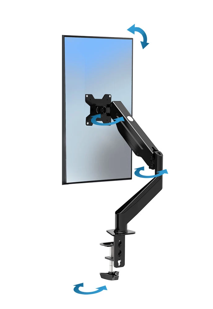 Arm for 1 monitor 10"-27" Esperanza FONOS ERW019, Adjustable desk display mounting arm, Gas spring Max load: 6 kg, VESA 75/100 mm, Tilt adjustment (up/down): +/-80o, Right/left adjustment: +90o/-90o, Monitor height adjustment: 0-400 mm, Screen rotation: 360o (PIVOT function), Maximum arm reach: 55 cm, Maximum arm height: 61.5 cm, Accessories for installation included