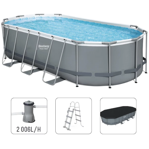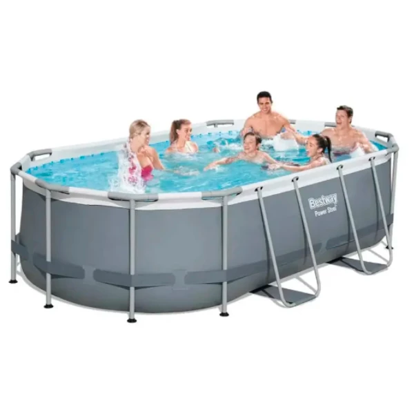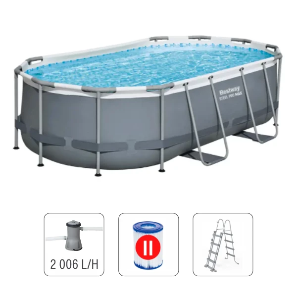 Piscina diferă prin durabilitate și stabilitate. Este fabricat din PVC cu 3 straturi de înaltă calitate: două straturi de vinil dens și unul poliester pentru o rezistență suplimentară. Cadrul metalic galvanizat rezistent la coroziune.