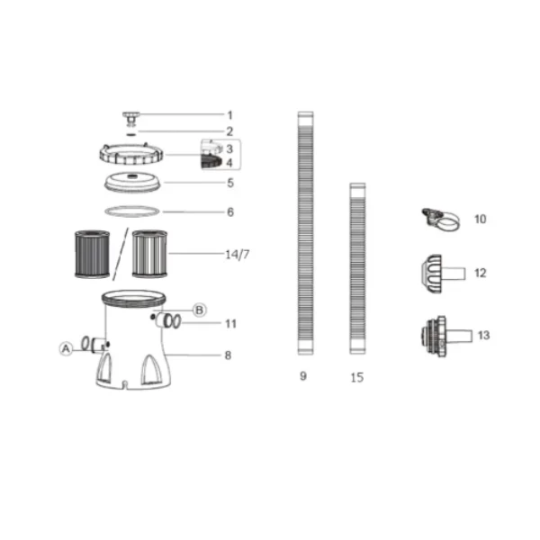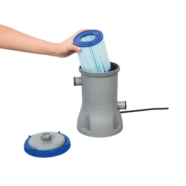 Pachetul include o pompă de filtrare cu cartuș cu o capacitate de 2006 l/oră, o scară, husă, și un dozator pentru tablete dezinfectante cu diametrul de pînă la 2.54cm (se montează pe duza de evacuare).