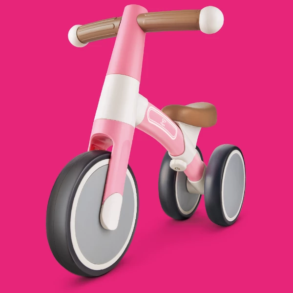 Bicicletă de echilibru cu trei roți, reglabilă.