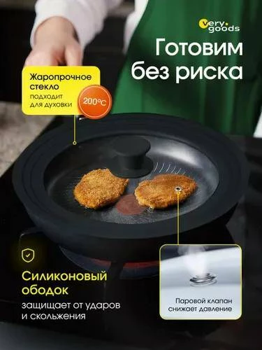 Realizat din sticlă termorezistentă, suportă temperaturi de până la 200°C, fiind potrivit atât pentru aragaz, cât și pentru cuptor. Marginea din silicon alimentar asigură o etanșare perfectă, protejează vasele de lovituri și previne alunecarea. În plus, sup apa de abur integrată reglează presiunea, garantând o gătire sigură și uniformă.