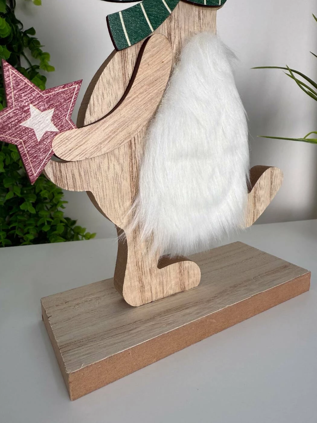 Este o alegere perfectă pentru decorarea mesei, poliței, ferestrei sau bradului de Crăciun, oferind un aer vesel și autentic. Stabil și ușor de amplasat datorită suportului său din lemn, se potrivește în orice tip ...