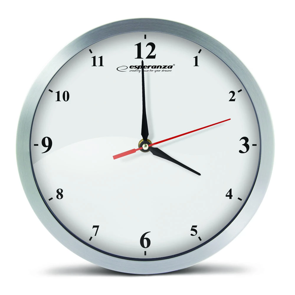 Clock Wall Esperanza DETROIT  EHC009W White,  30 cm, Aluminium frame, Quiet movement, hook for easy installation, Power: 1x AA battery (not included)