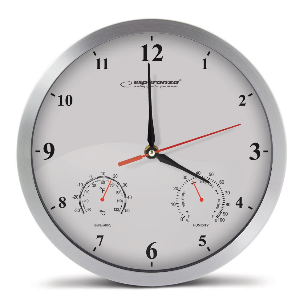 Clock Wall Esperanza WASHINGTON  EHC008W White,  30 cm, Aluminum clock frame and hands, Quiet movement, hook for easy installation, Measurements: temp