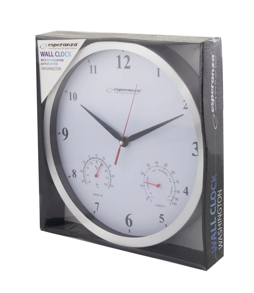 Clock Wall Esperanza WASHINGTON EHC008W White, 30 cm, Aluminum clock frame and hands, Quiet movement, hook for easy installation, Measurements: temp