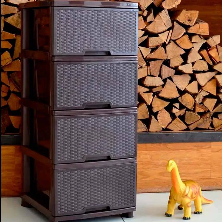 Acest comod cu design tip rotang (împletit) este alegerea perfectă pentru cei care doresc o soluție practică de depozitare, dar și un element decorativ elegant. Textura de rattan oferă un aspect modern și cald, potrivit pentru orice încăpere — dormitor, living, birou, baie sau cămară.