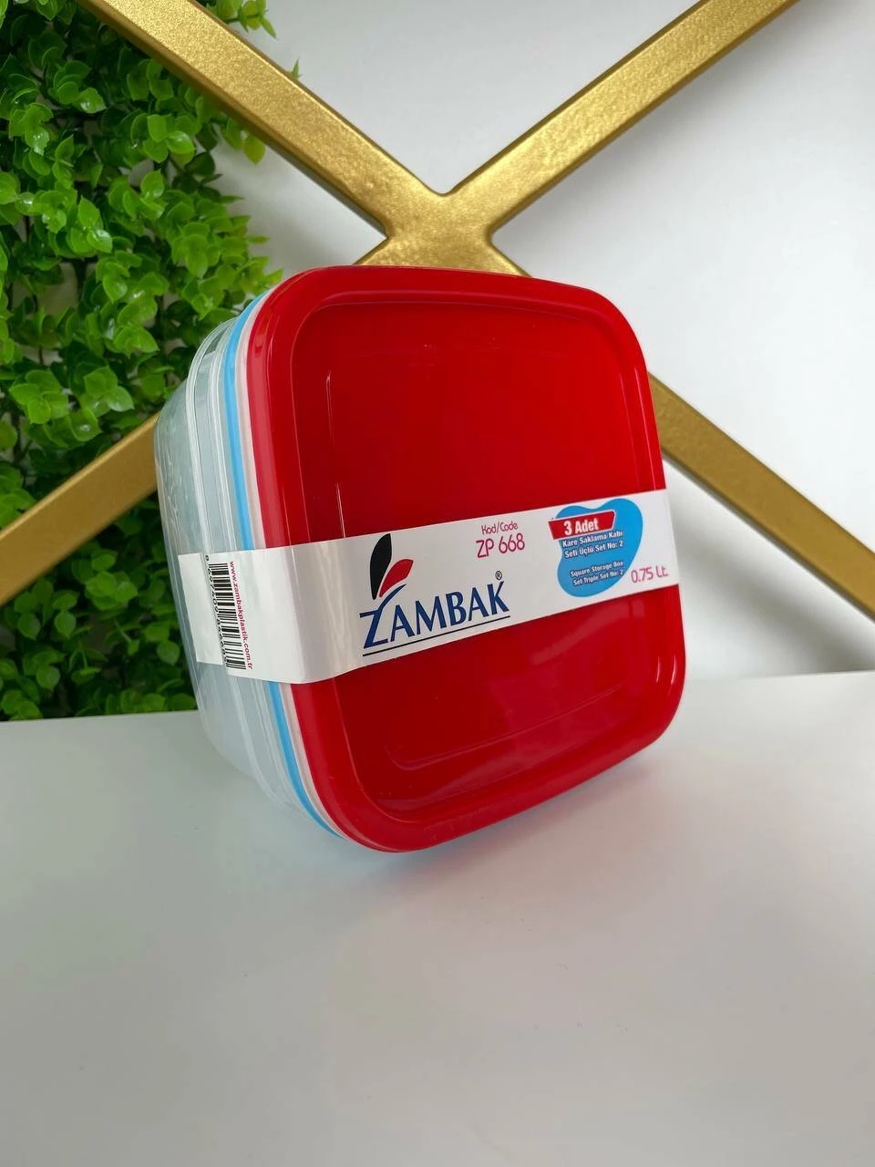 CONTAINERE PATRATE CU CAPAC ZAMBAK 0.75L SET 3 BUCATI (Z668)