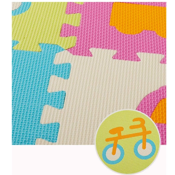Covorașul-puzzle „Transport” este un set de joacă colorat și sigur, potrivit pentru copiii de la 1 an. Setul conține 9 piese moi care se îmbină ușor, formând o suprafață de joacă de 86×86 cm.Este realizat din material EVA de înaltă calitate – moale, antiderapant, rezistent la umiditate și ușor de curățat.Covorașul stimulează dezvoltarea motricității fine, coordonarea mișcărilor, atenția și imaginația, oferind un spațiu confortabil și sigur pentru joacă.