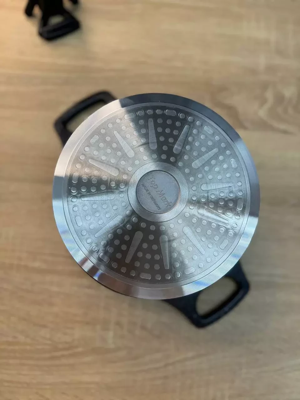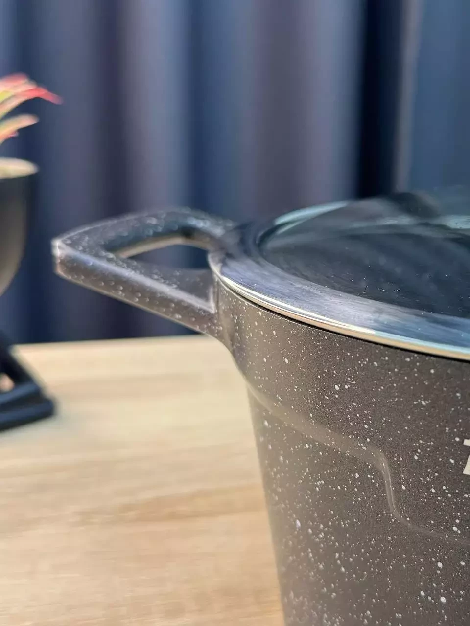 Cratita pentru mâncare formată din particule minuscule de piatră de marmură cu un strat antiaderent. Gătitul alimentelor nu se va lipi de suprafața interioară a acestei cratițe. Învelișul său este de zece ori mai lung și mai puternic decât învelișurile de teflon. Are un material mai îmbunătățit decât teflonul. Nu veți primi zgârieturi sau rupturi în timpul spălării. Marmura sa acoperită antiaderent este alcătuită din aluminiu turnat greu, care nu atinge alimentele. Capacul său de acoperire este alcătuit din pahare groase, astfel încât să puteți vedea cu ușurință starea alimentelor de gătit. Capacul acestui capac de gătit este dintr-un material din lemn, astfel încât să nu vă ardeți mâna în timp ce îl îndepărtați în timpul procesului de gătit.