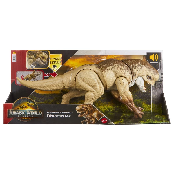 Intră în lumea Jurassic World Rebirth cu această figurină autentică a dinozaurului Distortus Rex, realizată fidel personajului din film! Această jucărie de villain dispune de două tipuri de atac: mârâit și mușcătură, precum și o mișcare laterală a părții superioare a corpului. Apăsarea butonului de lângă coadă activează tremurul capului, sporind efectul atacului.