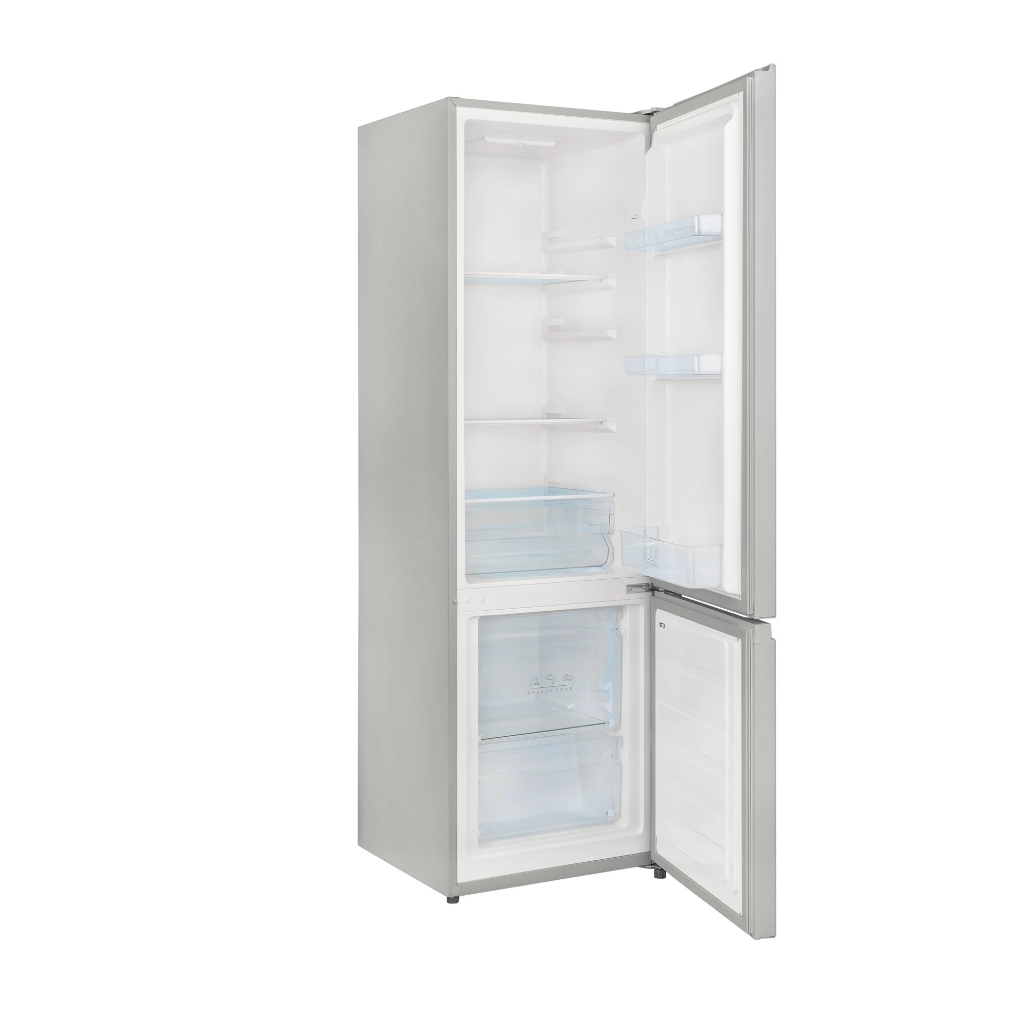 Frigider Daewoo DLF-260MEX 260L (62L+198L), 177cm, Static, clasa E, inox, decongelare automata, control mecanic, iluminare LED, raft pentru sticle, usi reversibile