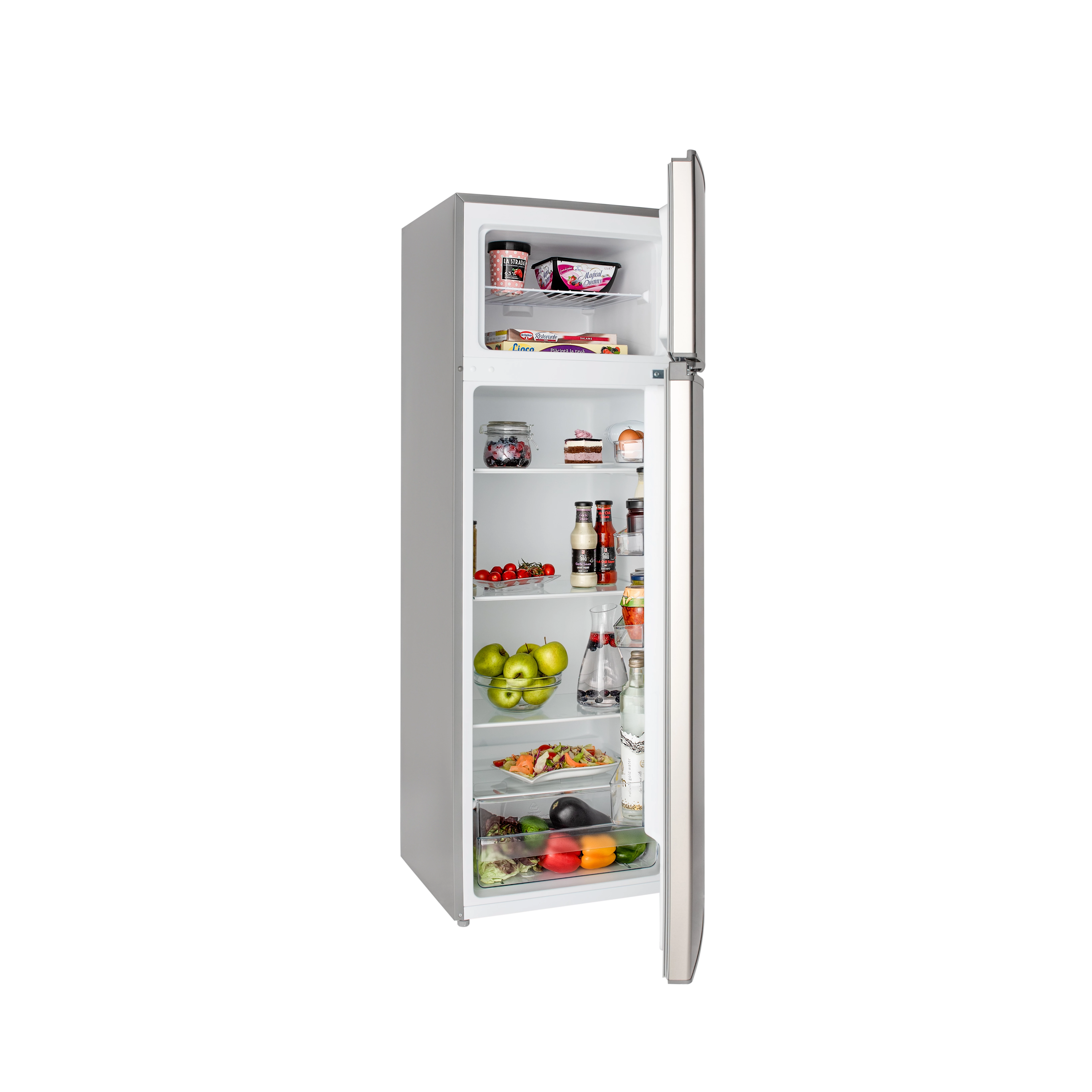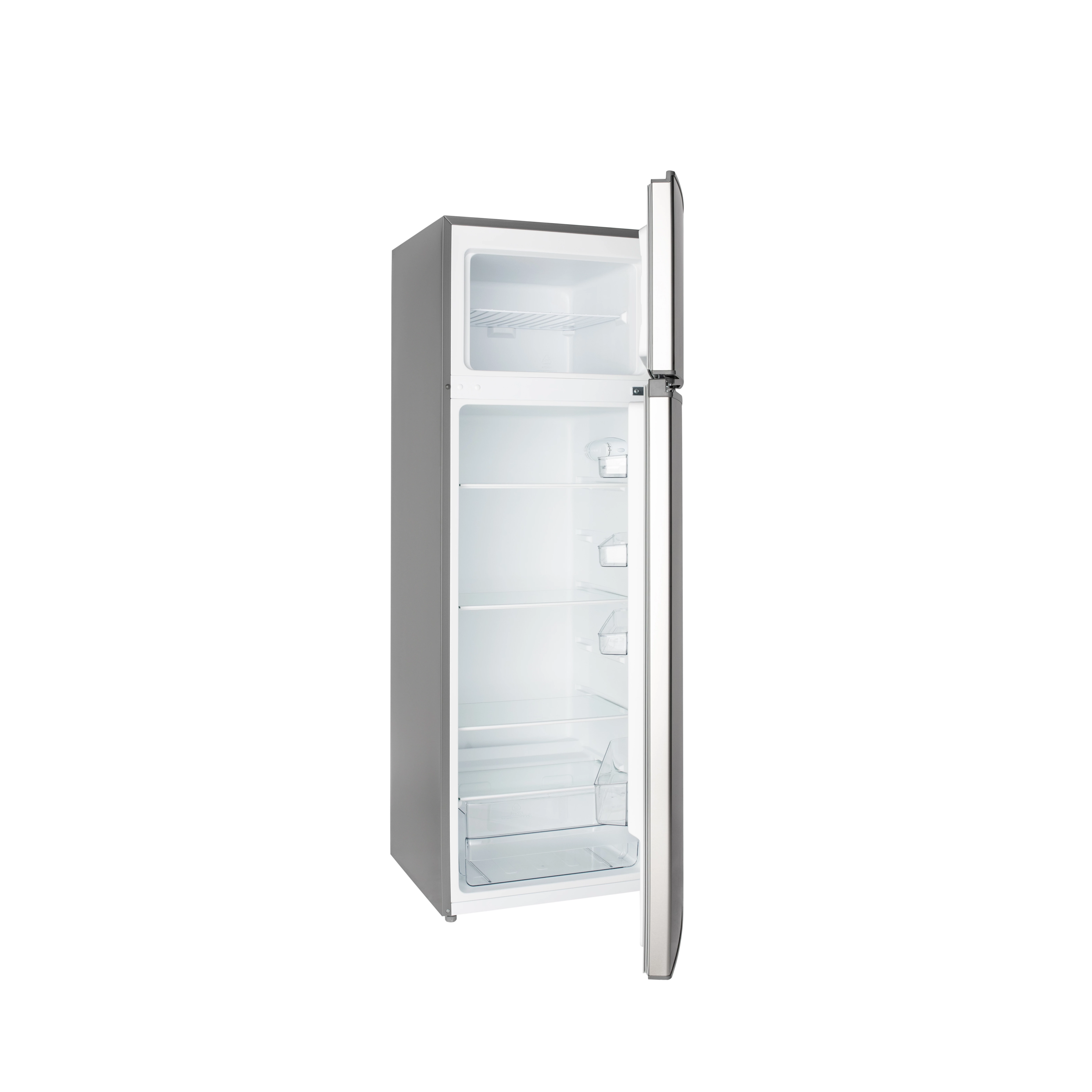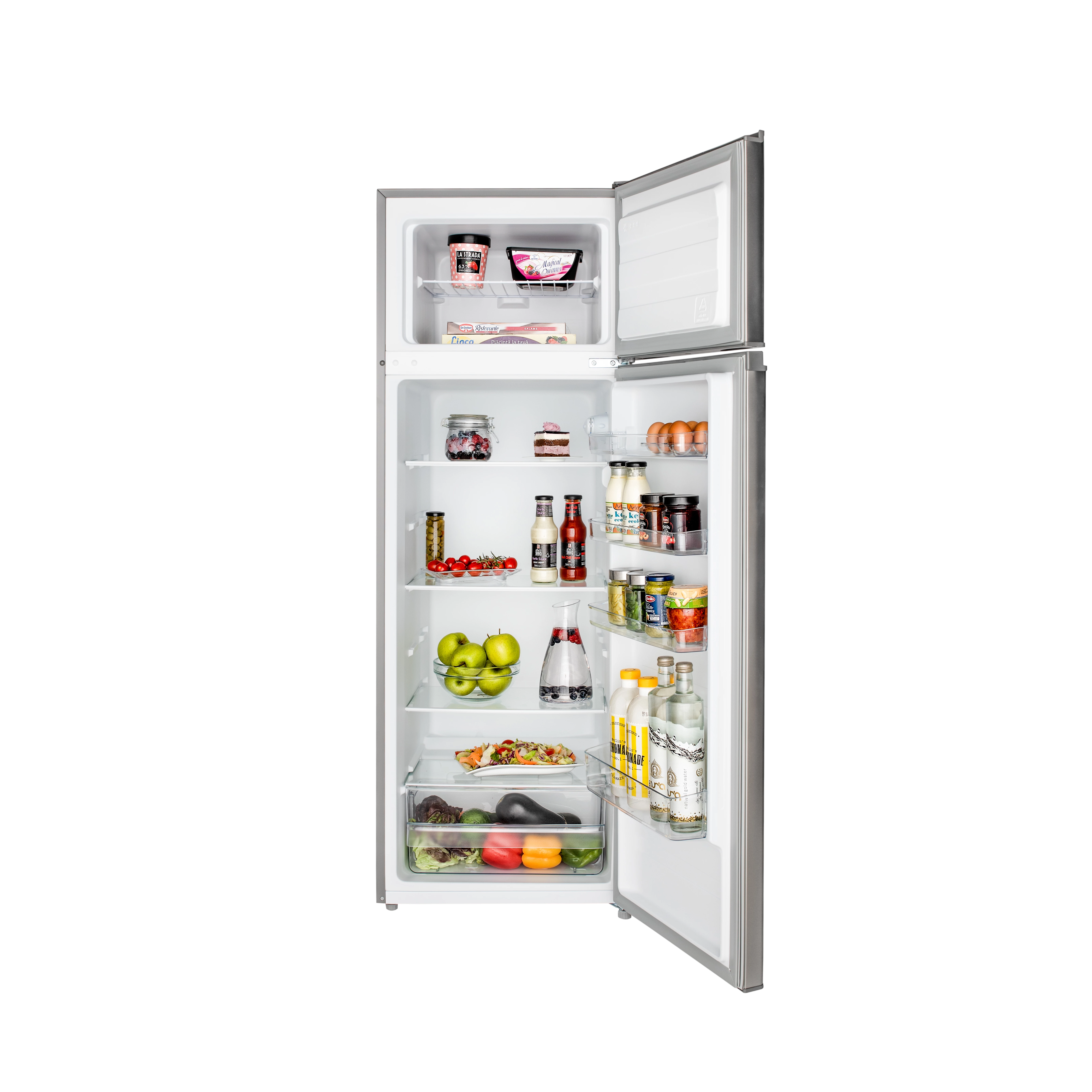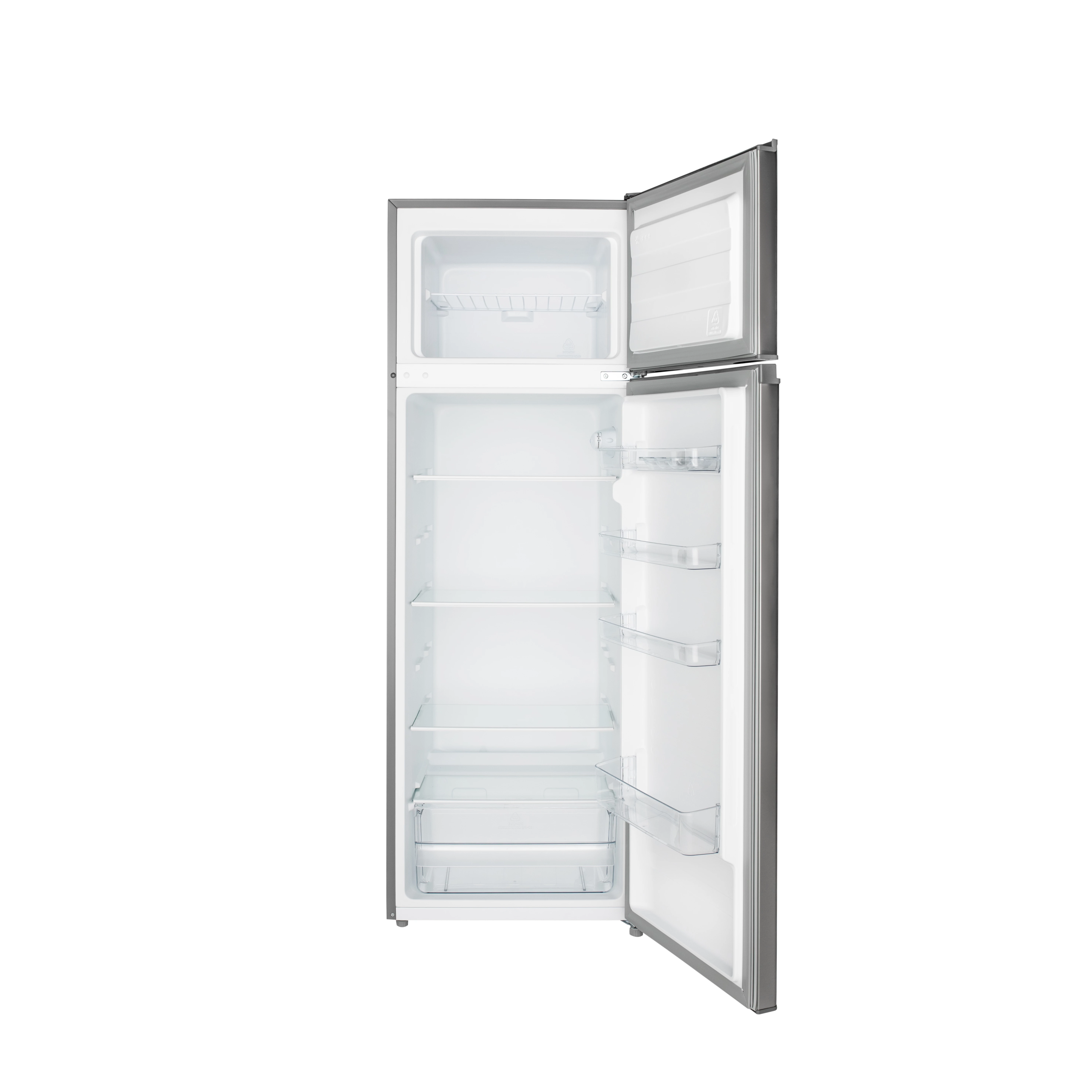 Frigider Daewoo DTS-240MEX, 235 L (194L+41L), 159cm, Static, clasa E, inox, termostat reglabil, usi reversibile, compartiment legume-fructe, picioare reglabile