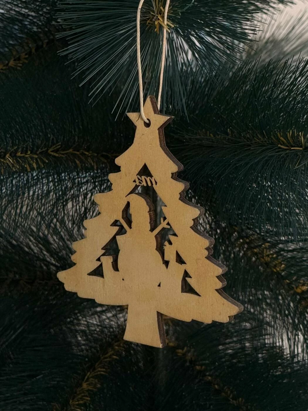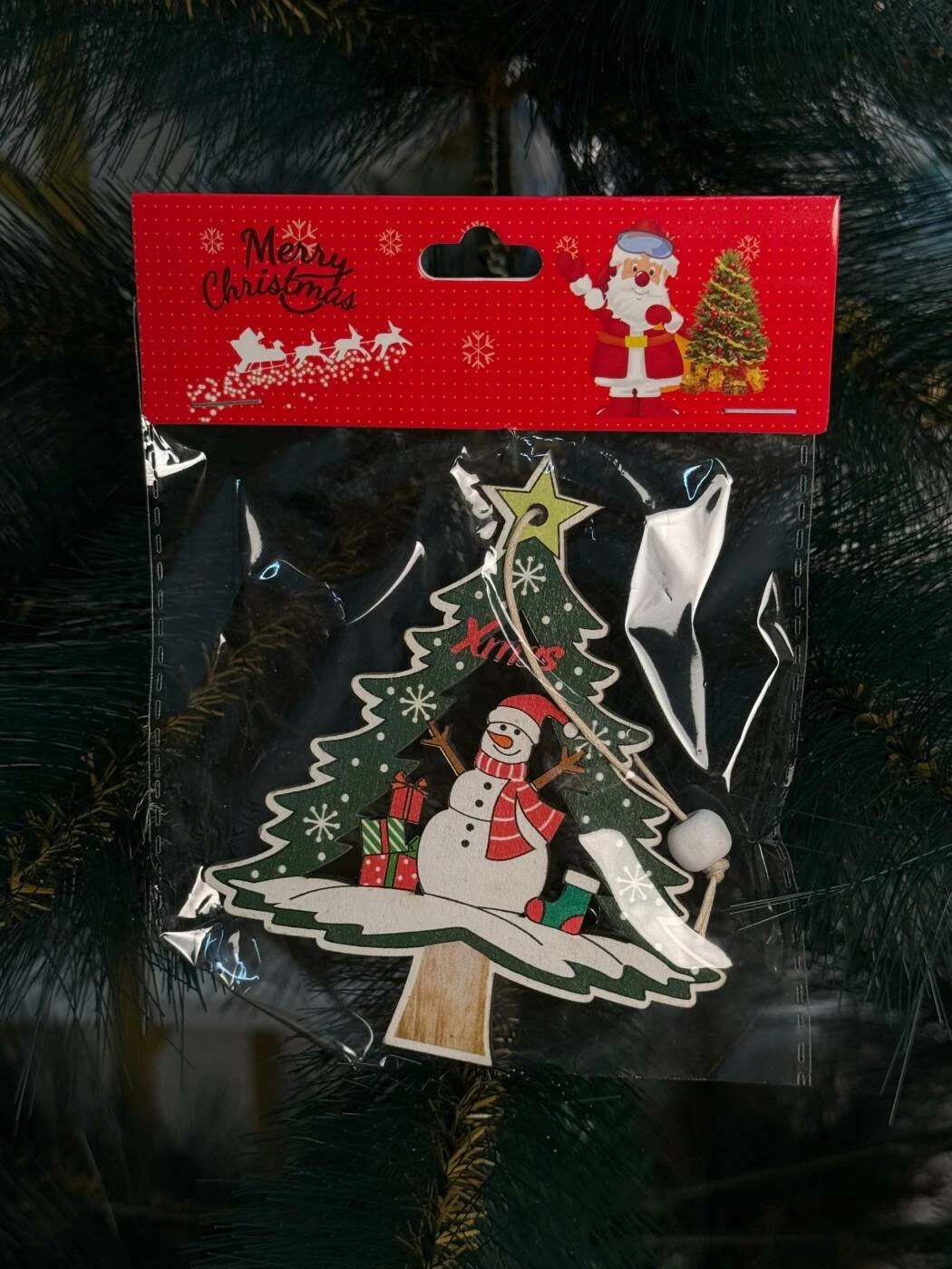 Adaugă o notă de veselie și farmec bradului tău cu acest glob decorativ din lemn, în formă de brad, decorat cu un simpatic om de zăpadă și cadouri colorate. Realizat cu atenție la detalii, accesoriul aduce spiritul autentic al sărbătorilor chiar în casa ta.