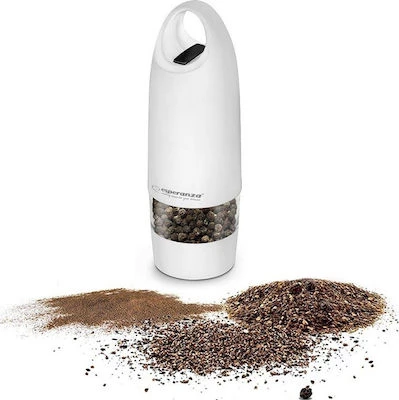 Grinder Esperanza MUNTOK EKP003W White, LED illumination during use Adjustable grinding thickness Length: 17cm Diameter: 5cm Power: 4* AA batteries (n