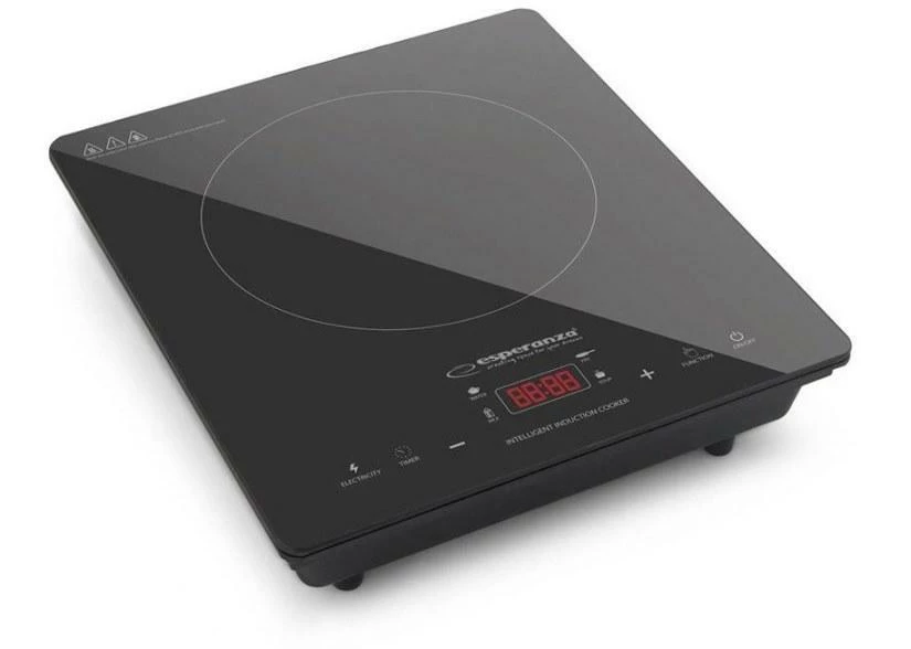 Induction Hot Plate Esperanza VESUVIUS EKH009 Black, 2000W, Cooking surface: Unpolished black crystal glass 12-20cm, 50% cooking time savings as compared to electrical hot plate, Automatic pot detection (automatic shut down if the pot is not suitable), 80 °C-270 °C adjustable, 4 special designed cooking functions, Touch Control panel with big display, Timer with switch-off signal and sound, Electricity power, temperature and time display