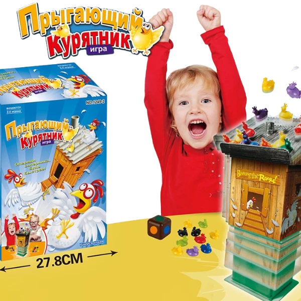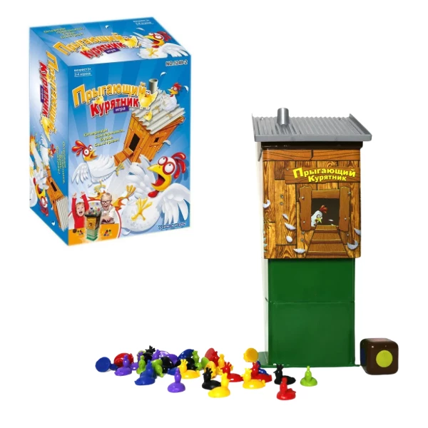 Cum se joacă: La începutul jocului, figurinele de găini se împart în mod egal între jucători. În mijlocul mesei se așază zarul, iar ferma este pregătită prin apăsarea pe acoperișul acesteia. Fiecare jucător își așază în față trei găini și, pe rând, aruncă zarul. Dacă culoarea de pe zar ...