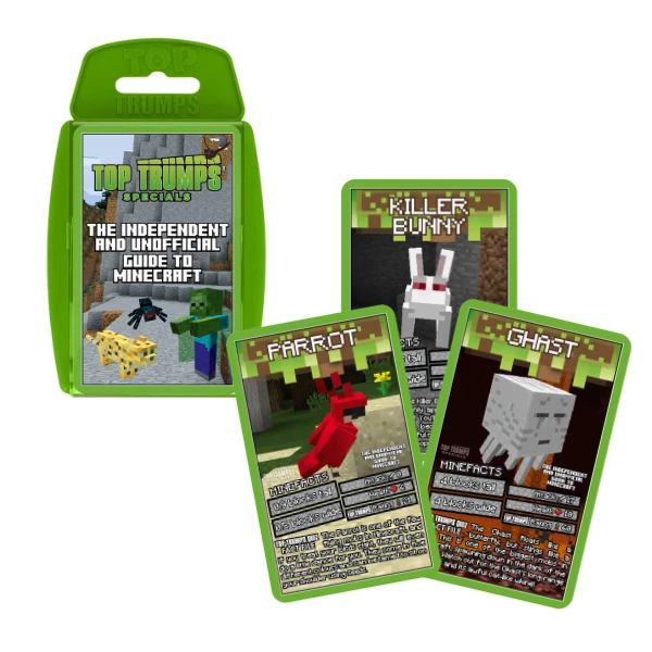 Jocul TOP TRUMPS este mai mult decât un simplu pachet de cărți! Este un joc renumit în întreaga lume, jucat de peste 50 de ani și îndrăgit de oameni de toate vârstele și interesele. Au fost create mii de ediții diferite TOP TRUMPS – de la orașe la sporturi. Acum este disponibilă o versiune cu eroi din "Minecraft"