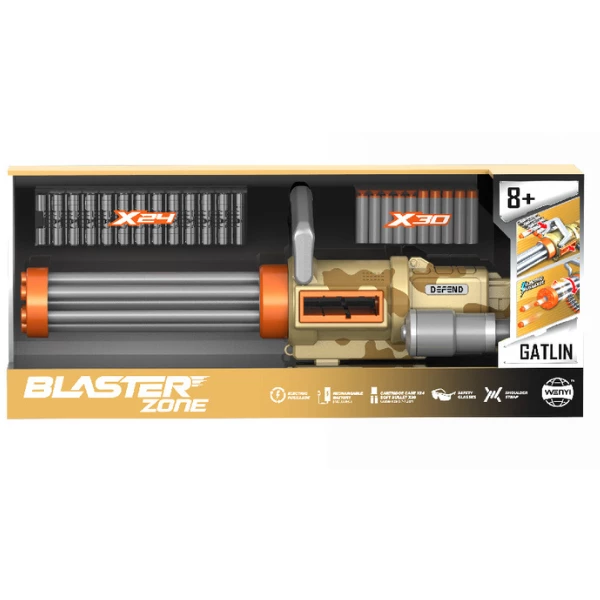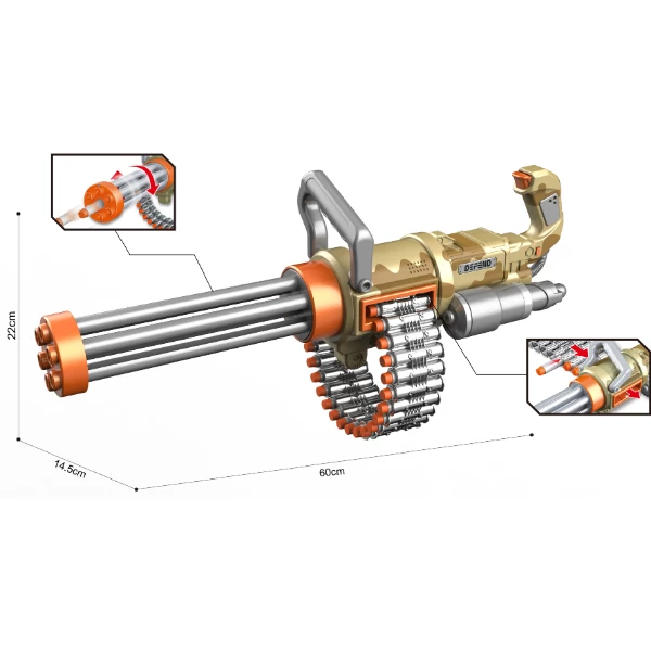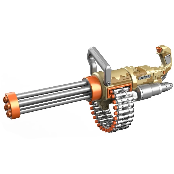 Mitralierea automată este un set de joacă puternic și captivant pentru copii de la 8 ani, oferind bătălii dinamice și pline de acțiune. Jucăria este echipată cu un acumulator de 7.4V care permite tragerea automată, adăugând realism jocului. Setul include 30 de gloanțe moi, 24 de cartușe și ochelari de protecție pentru siguranță sporită. Dimensiunea mare și designul impresionant fac ca această mitralieră să fie un cadou ideal pentru micii pasionați de jocuri active.