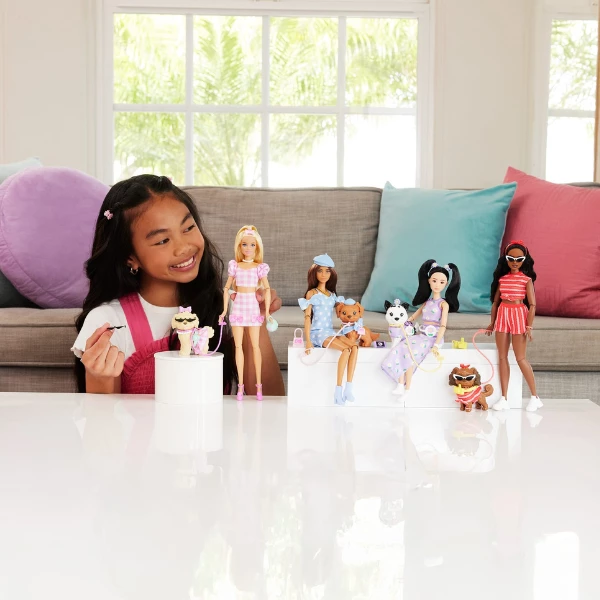 Barbie Twinning Looks este un set de joacă plin de stil care dublează distracția! Fiecare păpușă Barbie vine împreună cu un cățeluș adorabil îmbrăcat într-o ținută asortată. Setul include accesorii pentru păpușă și animal, pentru a crea look-uri complet coordonate de la cap până la coadă.