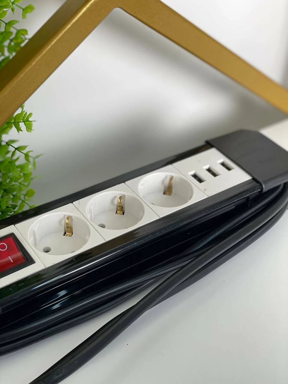 Dispune de 3 prize cu împământare și 3 porturi USB integrate, oferind flexibilitate maximă în utilizare.