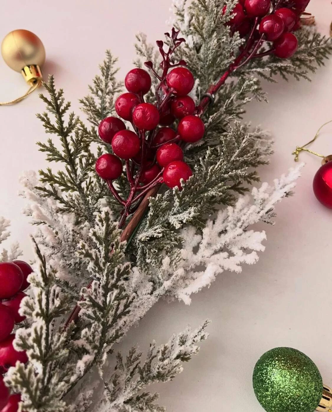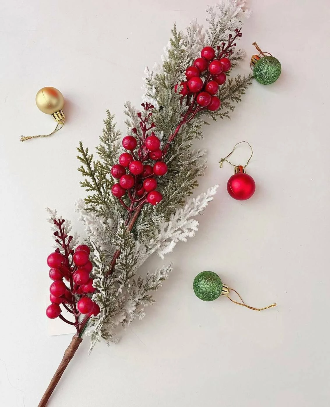Această ramură aduce un plus de culoare și rafinament oricărui spațiu, fiind perfectă pentru decorarea bradului, a meselor festive, a vazei de iarnă sau a aranjamentelor handmade.