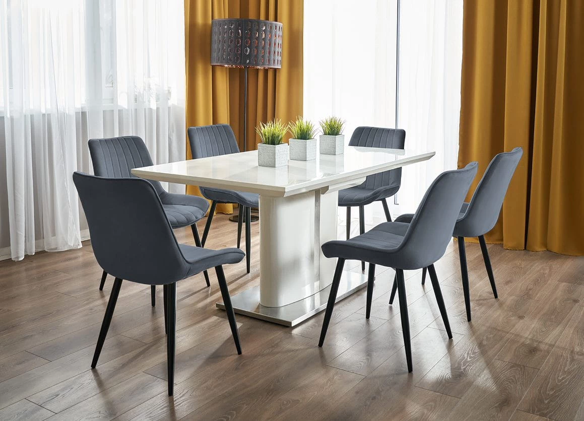 Scaun VIVA – Eleganță modernă și confort catifelatAdu un plus de rafinament în casa ta cu scaunul din colecția VIVA!Tapițeria fină din catifea (velur) și designul elegant al picioarelor metalice negre creează un contrast sofisticat, ideal pentru orice interior contemporan – fie că vorbim despre living, dining sau birou.🔍 Detalii produs🎨 Culoare Gri🪑 Material șezut Catifea (velur)🦵 Material picioare Metal, culoare neagră📏 Înălțime totală 83 cm↔️ Lățime totală 54 cm↕️ Adâncime totală 61 cm📐 Înălțime șezut 43 cm↔️ Lățime șezut 54 cm↕️ Adâncime șezut 43 cm🏋️ Sarcină maximă 130 kg🧰 Asamblare Necesită auto-asamblare✅ Avantaje:✔️ Design elegant și modern✔️ Tapițerie moale și plăcută la atingere✔️ Picioare stabile și rezistente✔️ Ideal pentru living, dining sau birou🔧 Se livrează cu instrucțiuni clare pentru asamblare.