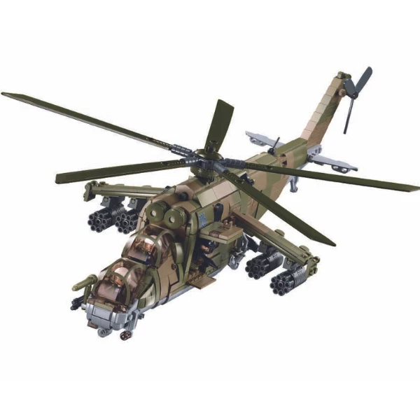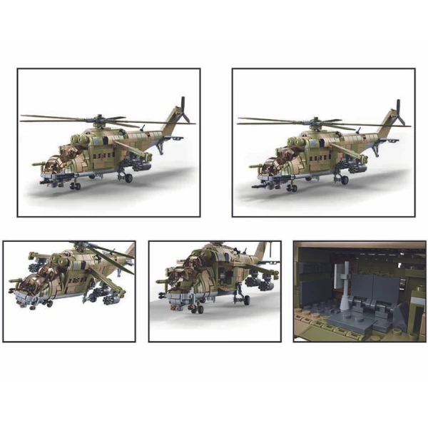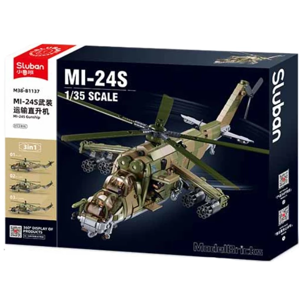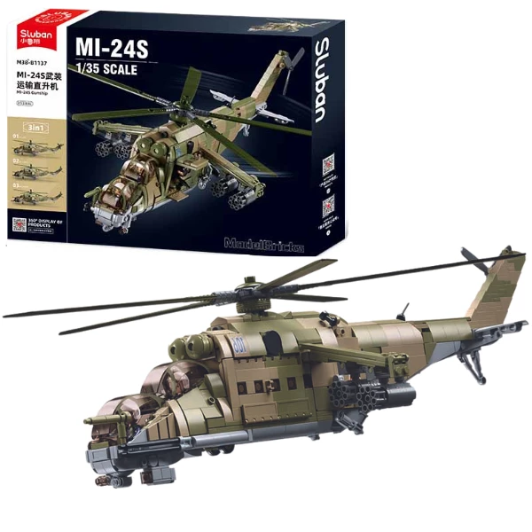 Setul de construcție de la Sluban Model Bricks„Avion de luptă MI-24S”, vă permite să asamblați un model avia realist. Setul include 3 minifigurine. Piesele din plastic sunt de înaltă calitate, toate elementele designului se unesc în mod fiabil între ele și pot fi demontate ușor. Setul este compatibil cu modele de construcție de la producători mondiali, inclusiv Lego.
