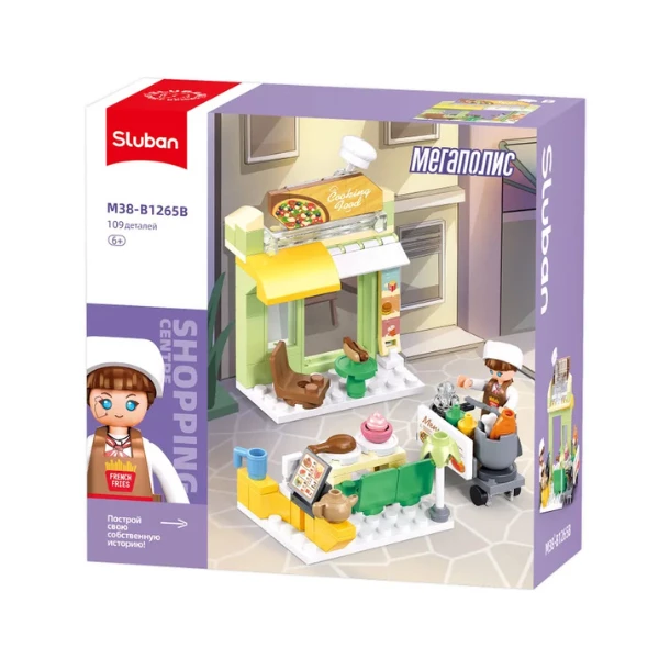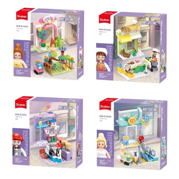 Construcția Sluban din seria „Megapolis” este disponibilă într-o varietate de locații ce pot fi întâlnite într-un centru comercial modern. Aceste seturi includ standuri cu flori, băuturi bubble-tea, pizza, gustări și saloane de frumusețe. Fiecare locație este completată cu accesorii tematice, oferind o experiență de joc realistă și captivantă.