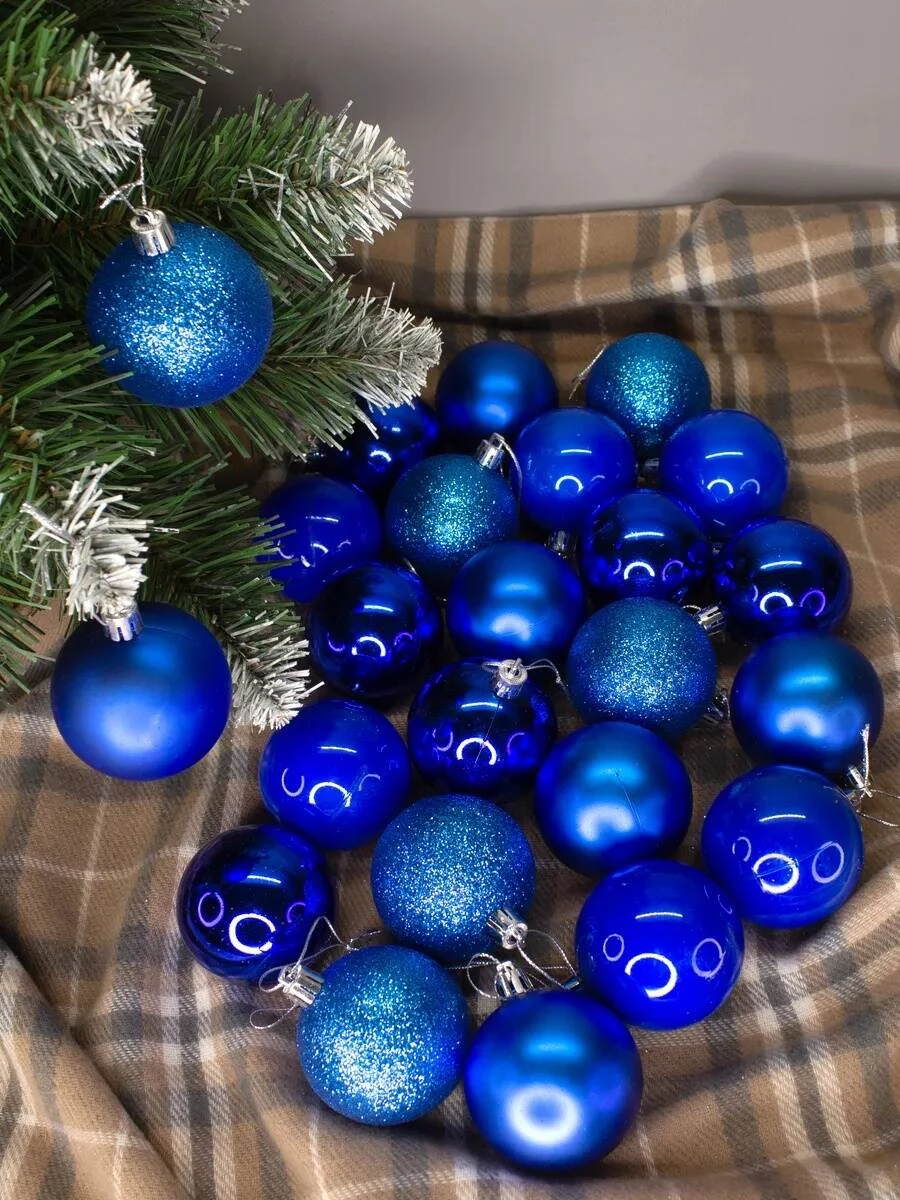 Set decorativ format din 24 de globuri pentru brad, ambalate într-o cutie practică din plastic.