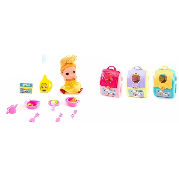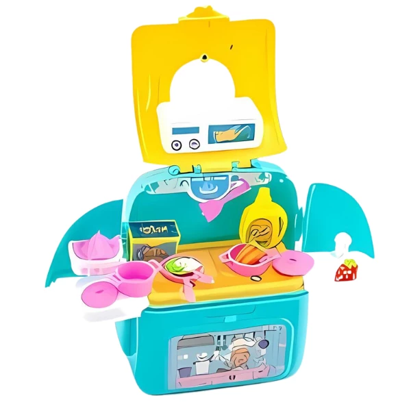 Acest set de joacă include 12 articole în miniatură și o păpușă înaltă de 2,5 inch, cu ustensile de bucătărie disponibile în trei culori diferite. Vine cu un rucsac la îndemână pentru a depozita toate articolele, facilitând transportul setului oriunde. Păpușile și accesoriile sunt versatile și potrivite pentru jocuri de povești în care puteți pregăti mâncare și crea o bucătărie imaginară.